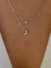 This stunning double layered necklace features delicate celestial-inspired pendants including a charming star and crescent moon design. Crafted with high-quality gold-toned metal chain, this necklace offers both elegance and versatility. The dual-layer design creates depth and visual interest, making it perfect for modern women who appreciate minimalist yet meaningful jewelry. The celestial motifs represent dreams, guidance, and feminine energy, while the adjustable chain length ensures comfortable wear for various necklines. Ideal for gifting or personal collection, this necklace combines contemporary fashion with timeless celestial symbolism.